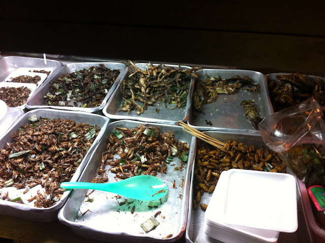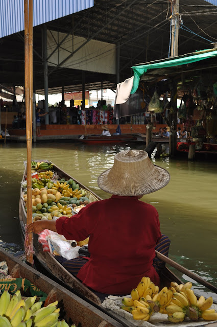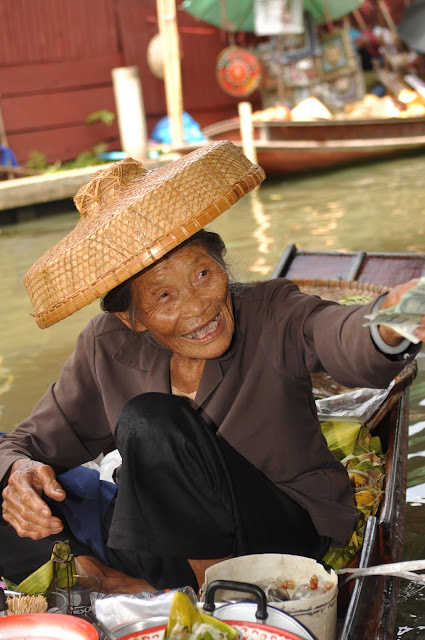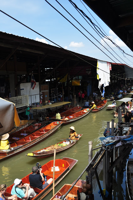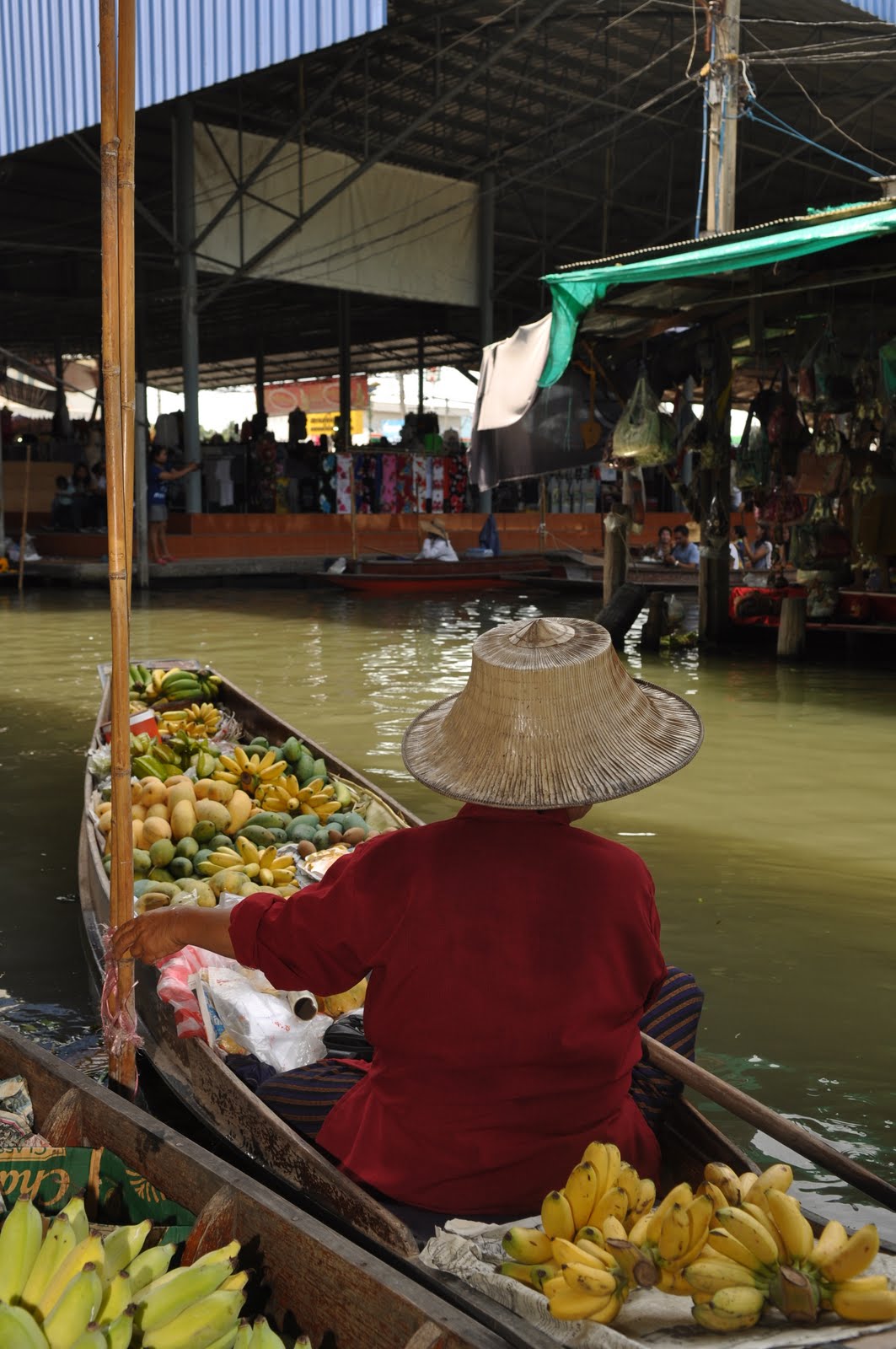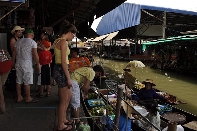 It was quite an experience to get there by so called long-tail boat through the narrow, muddy and dirty river. Once you get used to the piles of crap along the shores and inside and around the houses piled up alongside the river you'll find this ride quite attractive. We tried lots of stuff on the market, buying food from the boats.