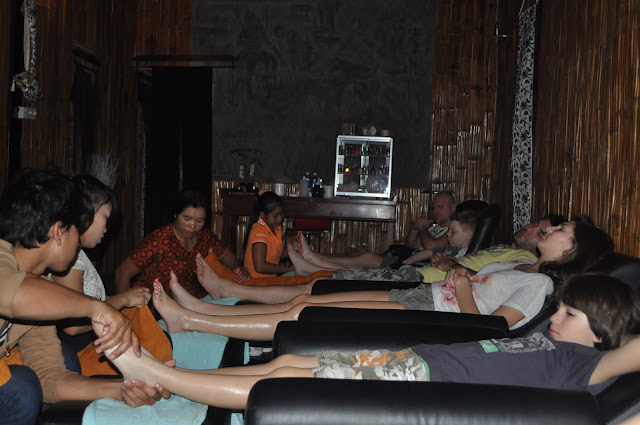 In the city were we stayed there was nothing much to do except eating, drinking, strolling through myriads of tourists and having a cheep massage every day. It is only about 8-10$ for an hour of massage: foot massage, traditional Thai, relaxing, you name it. You can really afford getting the massage for the entire family every day...which we did:-). They offer massage everywhere you go, so it looks like massage is their main industry.
