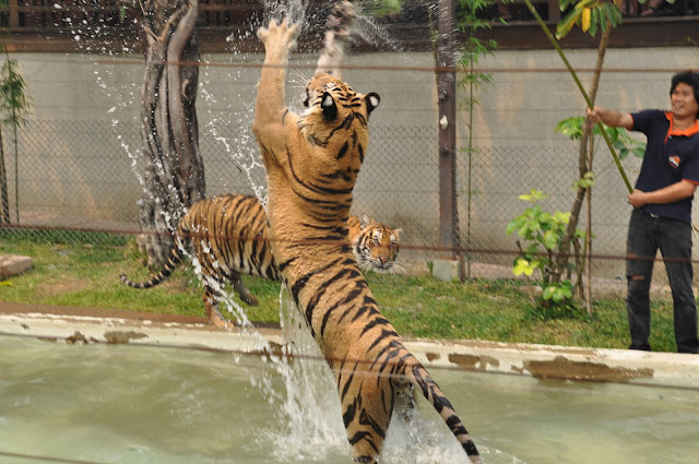 Large tigers were so playful so it seemed they quite enjoy their habitat though being held in captivity.