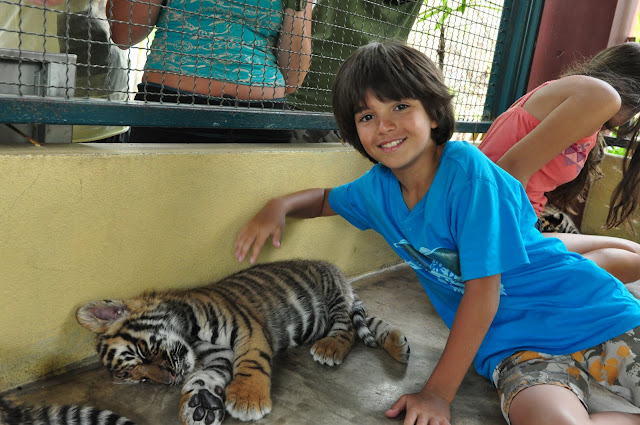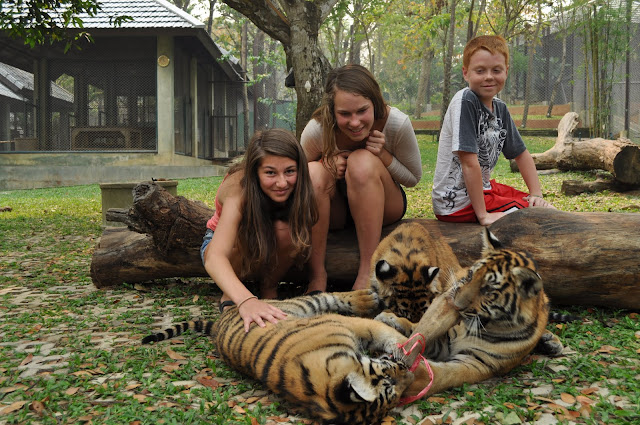 The weather was much more pleasant than we've had in the south which helped us see some stuff around. We've had a free day before the tour so we rented a driver and went around the city and ended up in local tourist attraction - tiger farm where we were supposed to pet real tigers. Quite intriguing, especially after having the experience with wild animals on Phi-Phi, but there was not doubt about it that we are going inside the cage with a live tiger.