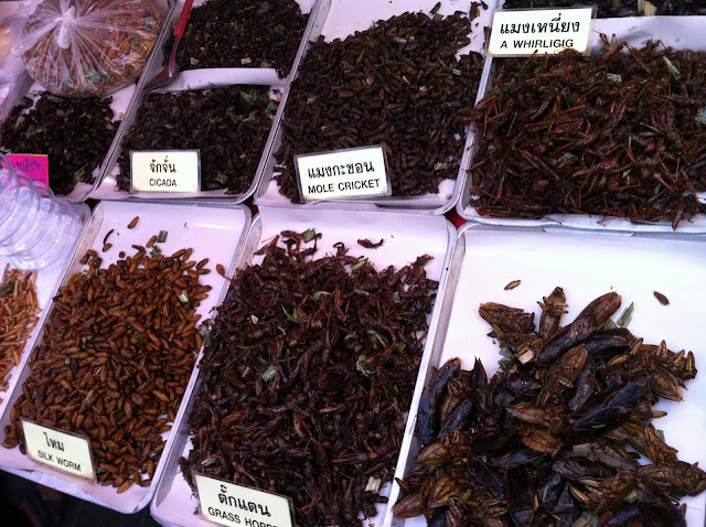 It was quite an experience to get there by so called long-tail boat through the narrow, muddy and dirty river. Once you get used to the piles of crap along the shores and inside and around the houses piled up alongside the river you'll find this ride quite attractive. We tried lots of stuff on the market, buying food from the boats.